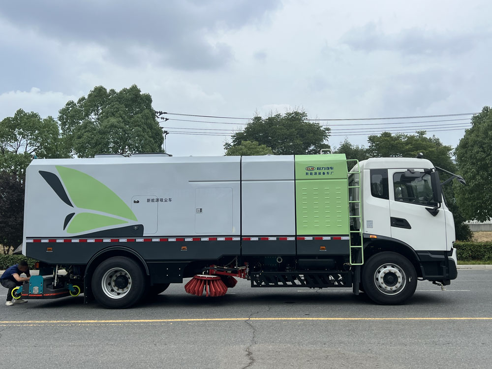 - 干式作業高效:在干式作業模式下,通過風機運轉產生強大的負壓吸力,可直接將地面的灰塵、石子、雜草、樹葉及生活垃圾等可吸物吸入垃圾箱內,無需用水,特別適合北方冬季道路清掃以及水資源匱乏的地區,同時避免了因用水清掃而導致的路面結冰等問題。