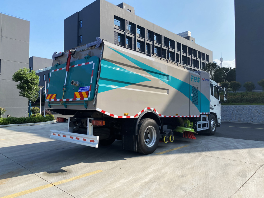 四、其他說明: 東風天錦純電動洗掃車是我公司開發(fā)的新一代環(huán)衛(wèi)產(chǎn)品,采用二類載貨汽車純電動底盤改裝。具有路面洗掃、清掃、清洗,可清洗路沿,路緣石立面、前角噴、后噴霧,高壓噴槍可清洗路標、廣告牌等功能。選裝低壓灑水系統(tǒng)時,可進行低壓前對沖或鴨嘴沖洗。
