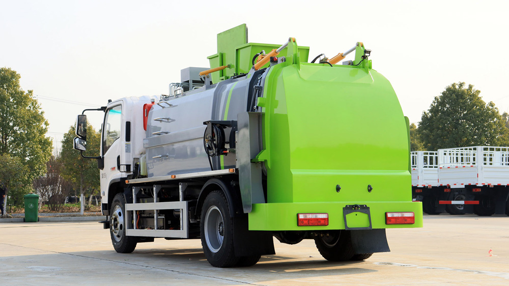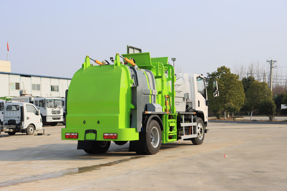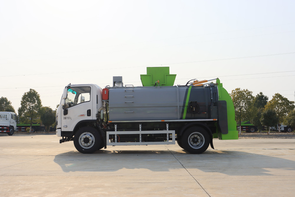 四、其他說明: 由于餐廚垃圾車上裝結(jié)構(gòu)復(fù)雜,自質(zhì)量較大,降低餐廚垃圾車自質(zhì)量,提高其載荷 利用率,將降低車輛運(yùn)營成本。因此采用高強(qiáng)度材料,以降低上裝自質(zhì)量;擋泥板、裝飾件、蓋 板等輔助件采用密度較小的注塑件,采用集成化程度較高的零部件,以減少空間占用和自質(zhì)量, 同時有利于改善液壓系統(tǒng)的工作性能。專人試車;模擬各種復(fù)雜工作環(huán)境,所有壓縮發(fā)車前實(shí)物測試。