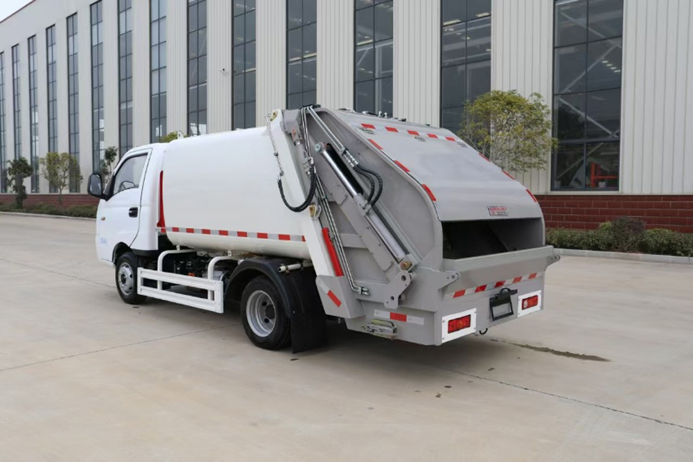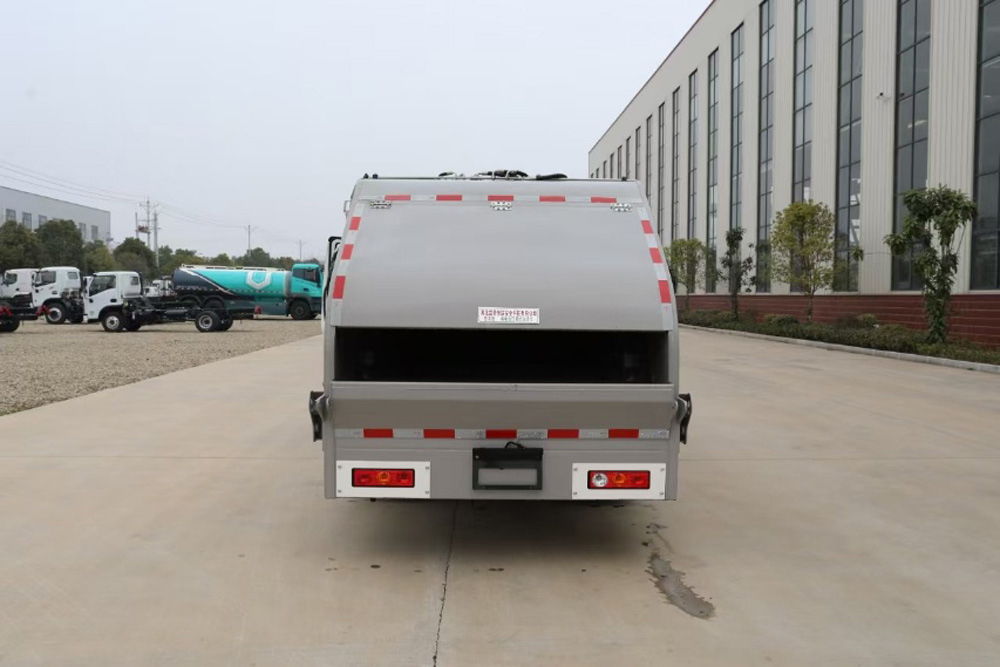 該車特點 涂裝采用噴粉加烤漆工藝。箱體容積3 立方米,為高強度鋼制作的弧形無泄漏船型箱體,頂部有刮滑板,防止垃圾泄漏和異味擴散。液壓系統采用國產油缸、睿宸油泵、揚州中梅多路閥。后帶翻桶架,可掛 2 只國標 240L 方塑料桶,提升機帶無線遙控。填裝器舉升油缸帶平衡閥,帶氣動密封蓋,填充器底部有污水箱,還配備作業后支腿和電控限位感應系統。