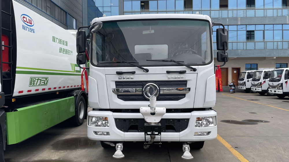 一、底盤配置: 采用東風凱普特EQ1180DACEV車身,配置玉柴TZ370XS-LKM1303發動機185/252馬力,國六排放標準,軸距5300,4500,5600(mm),整備質量8.7噸,額定載質量9.105噸,五擋變速箱,帶動力轉向,帶原廠空調,該車僅采用4500mm軸距,主要用于灑水及園林綠化。主要專用裝置由罐體、噴灑系統組成。罐體總容量:10.05立方米,有效容積:9.58立方米,介質:丙酮水溶液.密度:950千克/立方米,罐體尺寸(長×寬×高)為(mm):4500×2250×1450; 不裝電子水炮不裝前噴灑時外形長與前伸(mm)對應關系為:8185/0;不裝電子水炮安裝前噴灑時外形長與前伸(mm)對應關系為:8365/180;選裝電子水炮時外形長與前伸(mm)對應關系為:8685/500;該車上黃牌,城區道路請注意限行標識。