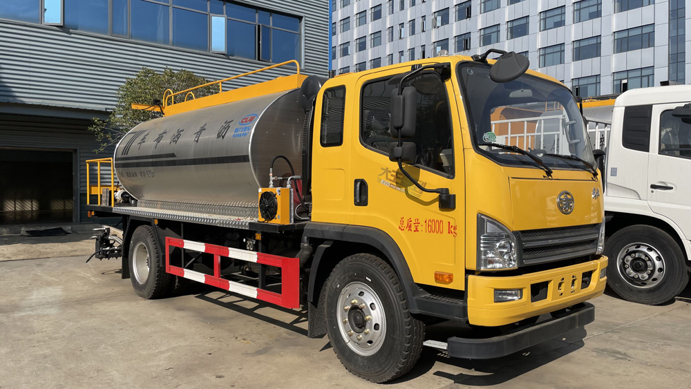 四、其他說(shuō)明: 智能型瀝青灑布車(chē)是一種專(zhuān)業(yè)灑布乳化瀝青、稀釋瀝青、熱瀝青、高粘度改性等瀝青的半智能科技產(chǎn)品。用于修筑高等級(jí)公路瀝青路面 底層的透層油、防水層、粘結(jié)層的灑布。該灑布車(chē)由汽車(chē)底盤(pán)、瀝青罐體、瀝青泵送及噴灑系統(tǒng)、液壓系統(tǒng)、燃燒及導(dǎo)熱油加熱系統(tǒng)、控 制系統(tǒng)、氣動(dòng)系統(tǒng)、操作平臺(tái)構(gòu)成。
