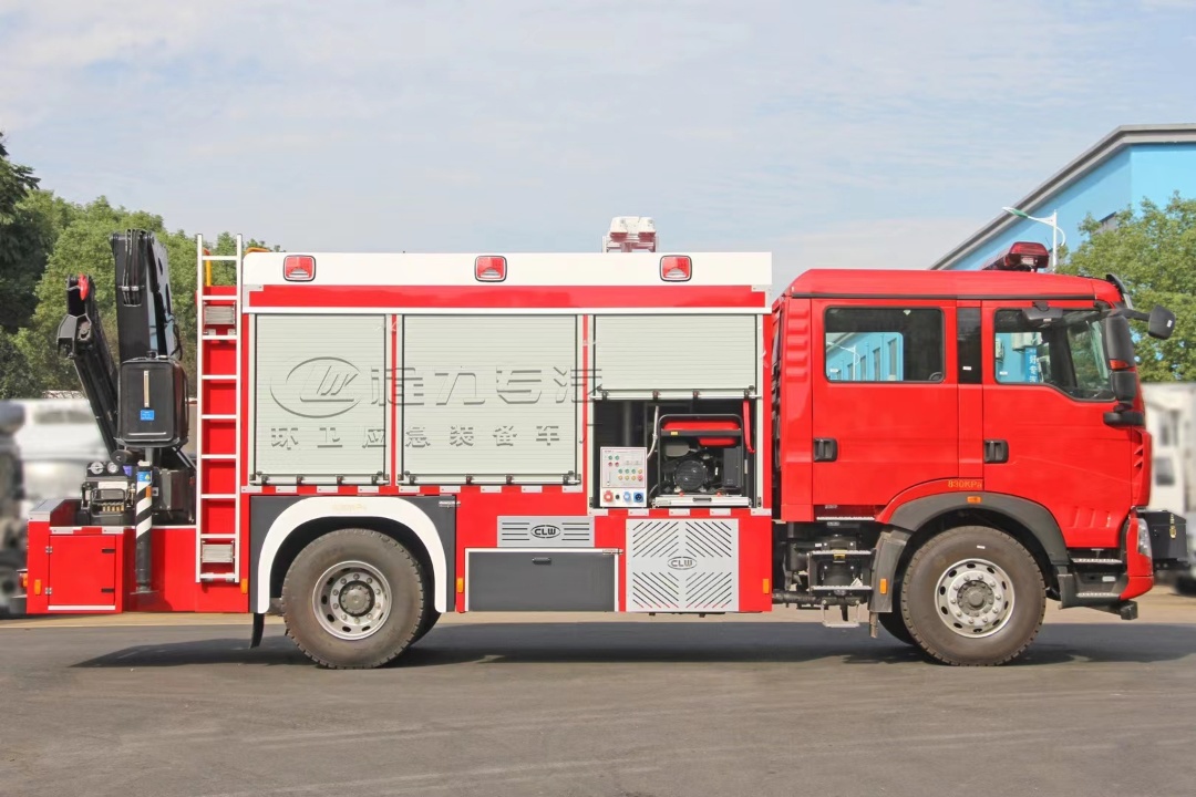 四、其他說明: 重汽豪沃搶險救援消防車,前拖后吊,具有起吊、自救/牽引、清障、發(fā)電、照明等功能,可裝備大量的破拆、偵檢、堵漏、防護等各類消防器材或工具;車輛器材箱內(nèi)部采用鋁合金型材可調(diào)模塊式結(jié)構(gòu),空間布局合理,工具取放安全方便,屬于特勤消防車,廣泛用于消防救援隊,應對各種自然災害、突發(fā)事件及搶險、搶救等各個領(lǐng)域。